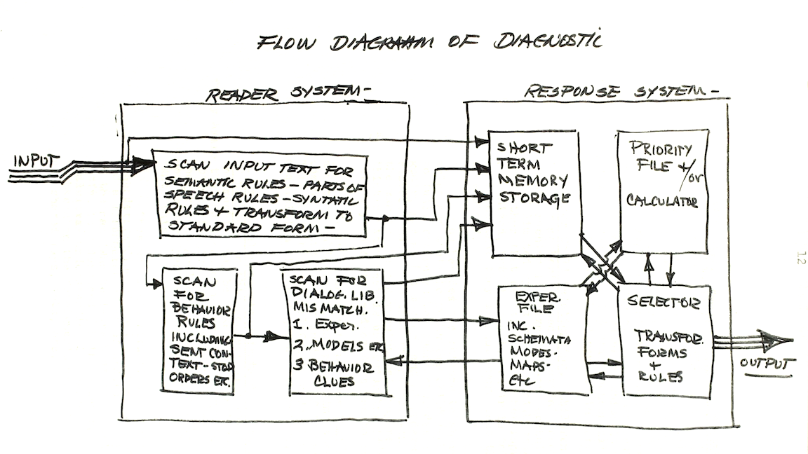 Computer scientist Joseph Weizenbaum, 1964-1966, archive sketch for ELIZA chatbot